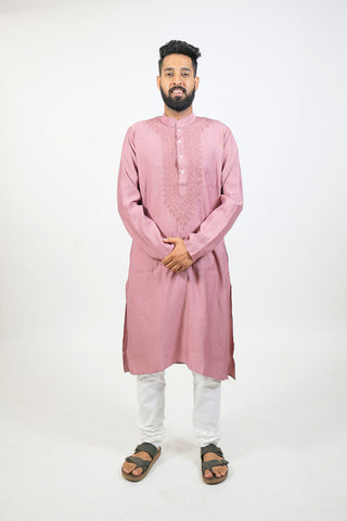 Design: Classic straight-cut kurta with a mandarin collar, button placket, and long sleeves. The lightweight mul cotton fabric ensures breathability and comfort while maintaining a refined ethnic look.