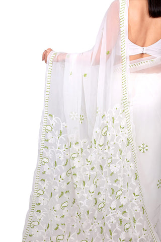 - Design: Elegant White base adorned with rich Green Chikankari threadwork, creating a clean and graceful contrast