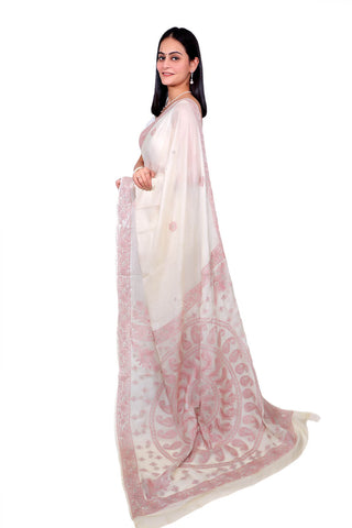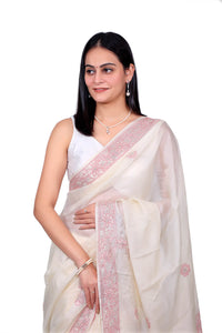 Grace and heritage come together in this Ivory & Rust Chanderi Silk Chikankari Saree. The soothing ivory base paired with intricate rust embroidery creates a regal yet subtle look. Lightweight and elegant, this masterpiece is a timeless pick for weddings, festive gatherings, and cultural occasions.