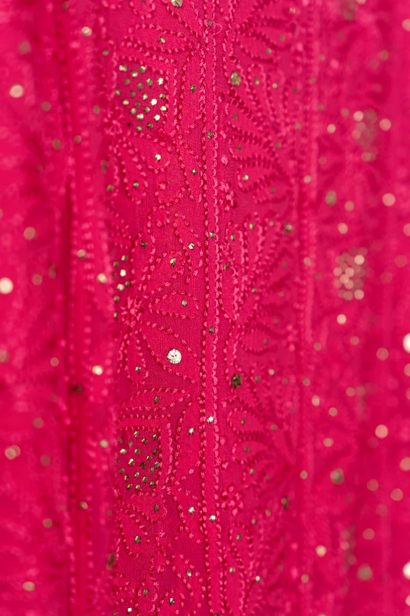 - Stunning magenta pink pure georgette suit set with intricate Chikankari, Resham Dhaga work, and Mukesh work