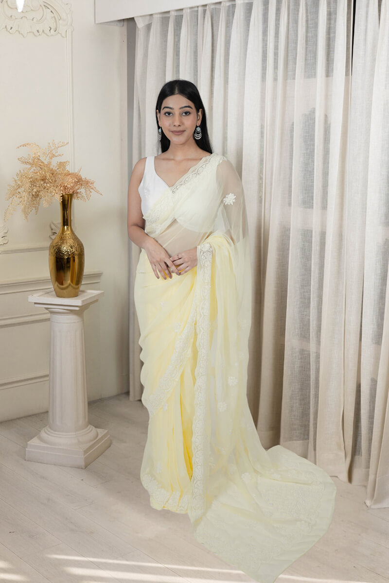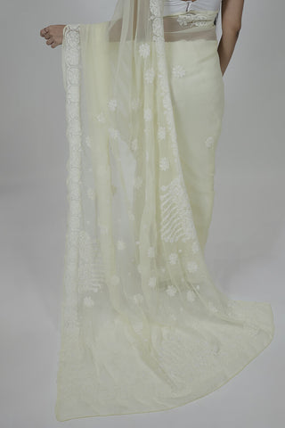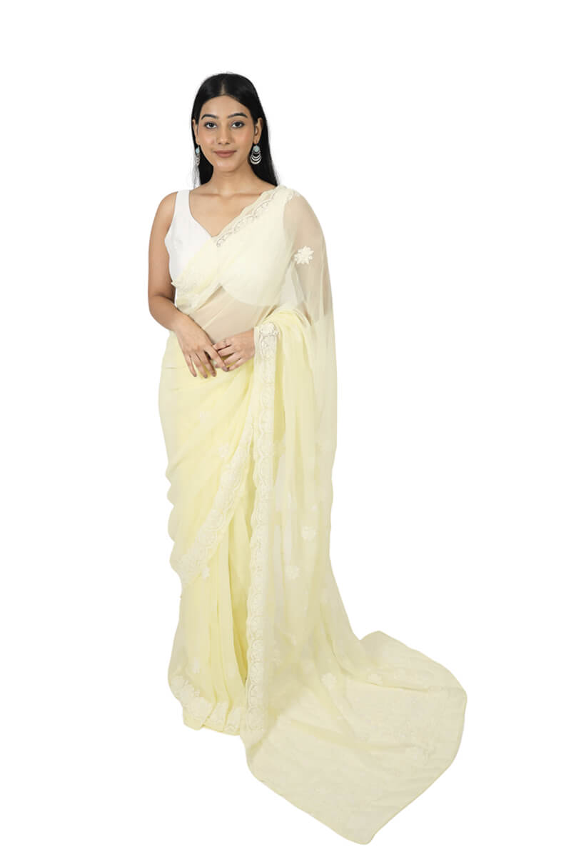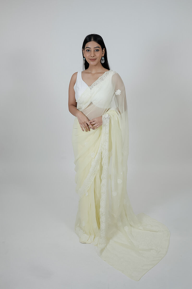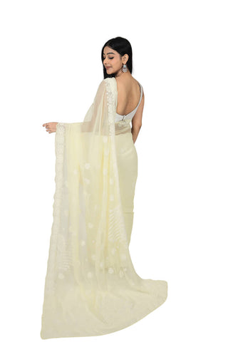 Grace your special occasions with this stunning Pale Beige Georgette Saree, accentuated with intricate pearl and katdana work. The lightweight drape and radiant detailing create the perfect blend of sophistication and celebration.
