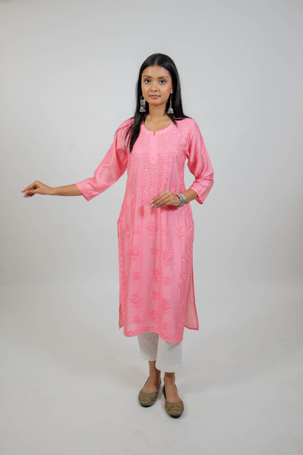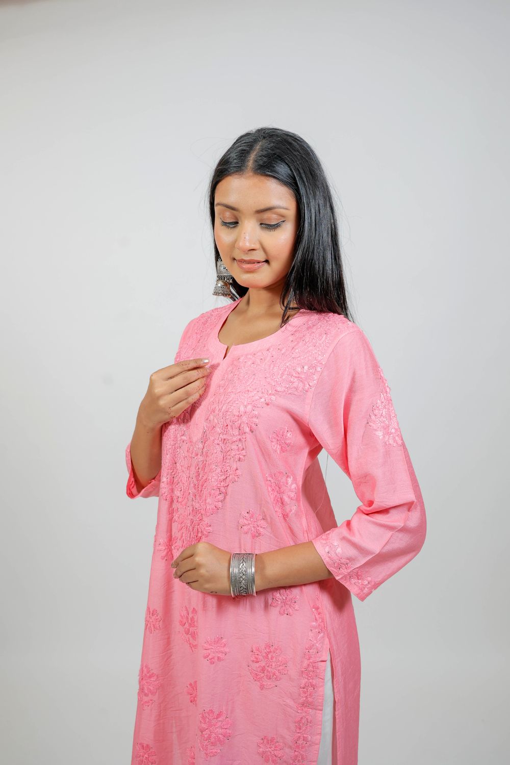 Inform when this item available Pink Chanderi Silk Chikankari Kurti