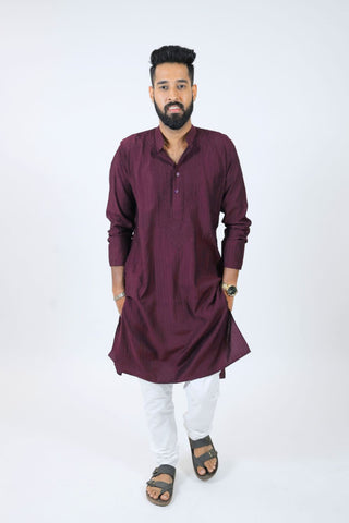 Design: Classic straight-cut kurta with a mandarin collar, button placket, and long sleeves. The lightweight mul cotton fabric ensures breathability and comfort while maintaining a refined ethnic look.