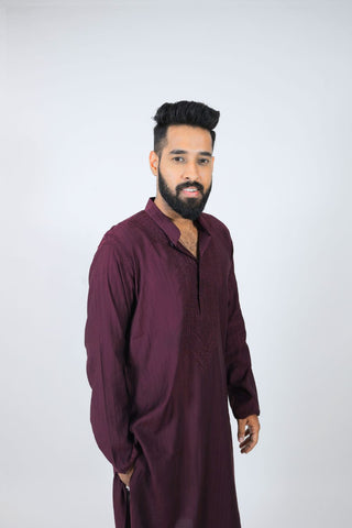 Work: Elegant wine Chikankari embroidery intricately handworked across the front panel, enhancing the traditional appeal of the rich wine base.